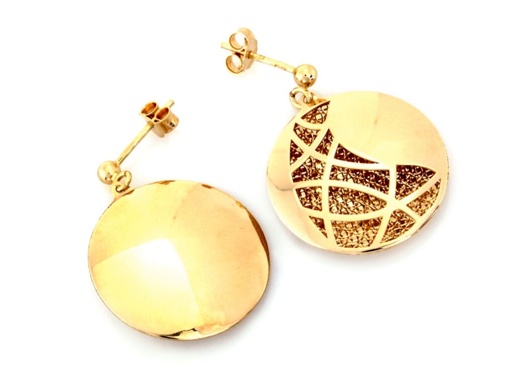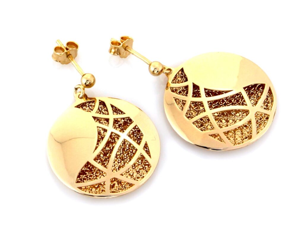 Eleganckie Złote kolczyki wiszące okrągłe trójwymiarowe próba 585 – zapinane na sztyfcie
